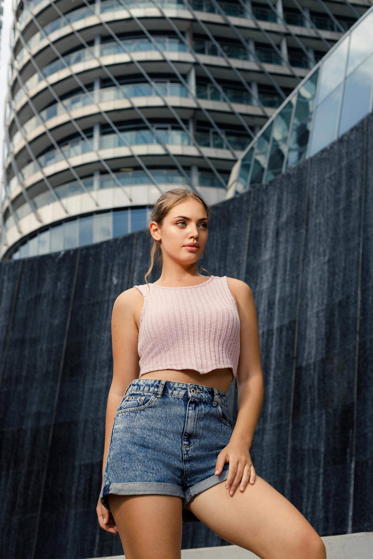 - Model height: 5’.8”