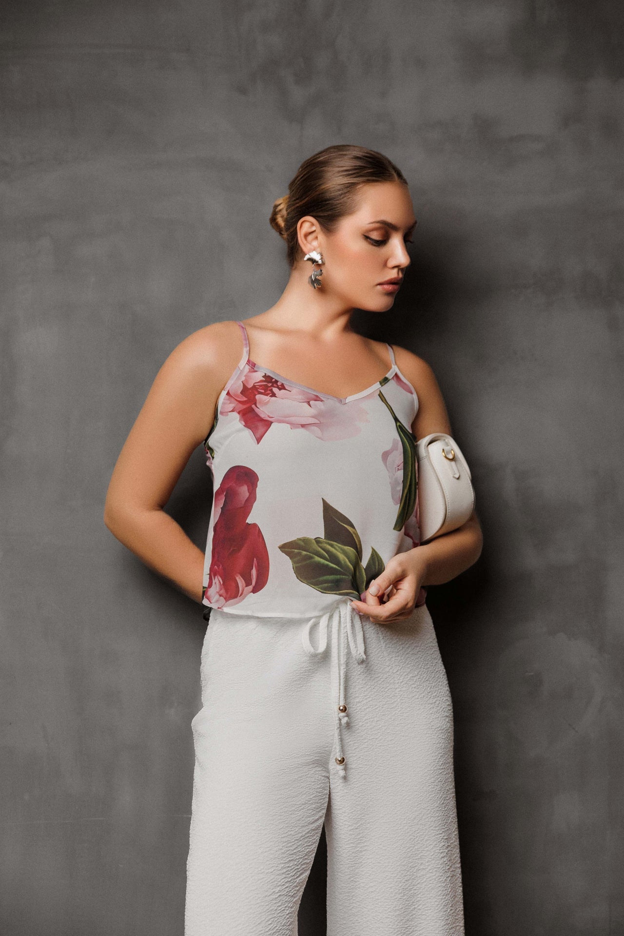 Unveil effortless sophistication with these exquisite textured wide-leg pant,designed to be your go-to piece for chic evening attire. Crafted from a fabric featuring a subtle, luxurious crinkle texture, these pants offer a comfortable yet refined drape that moves beautifully as you walk. The relaxed, high-waisted fit elongates the silhouette, while the adjustable drawstring waist ensures a perfect, customizable fit for ultimate comfort without sacrificing style.These versatile pants strike a perfect balance between comfort and elegance, making them suitable for a variety of evening settings: picture yourself wearing them at a tropical resort dinner, a casual yet chic cocktail party or even for an elevated dining experience. For a sophisticated look, pair them with a fitted silk camisole and strappy heels, accessorizing with bold gold jewelry to highlight the crisp tone. Alternatively, style them with an off-the-shoulder crop top and elegant flats for a relaxed resort feel. The wide-leg cut is particularly flattering and on-trend, offering a contemporary foundation for countless polished evening outfits