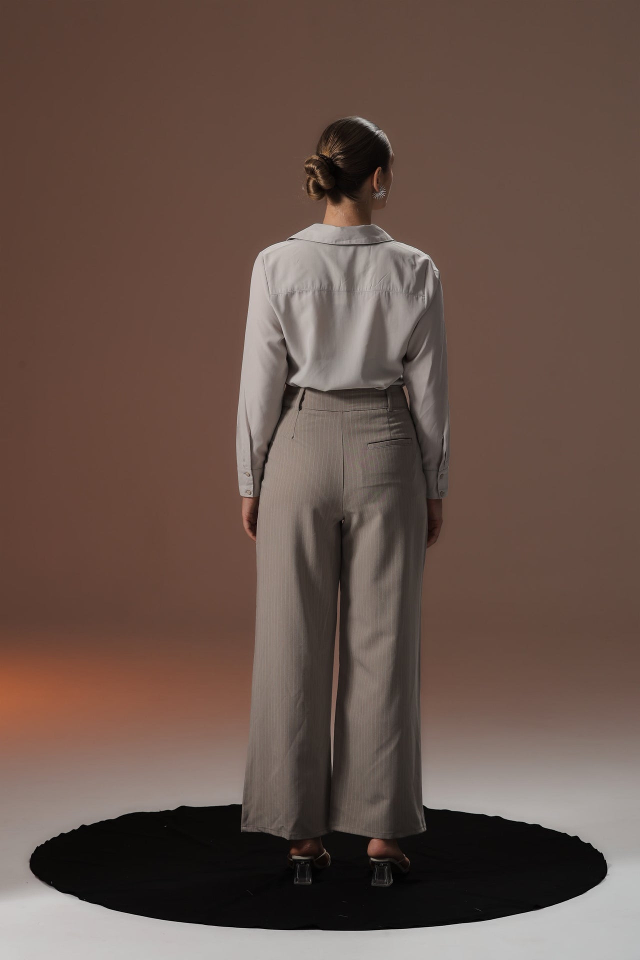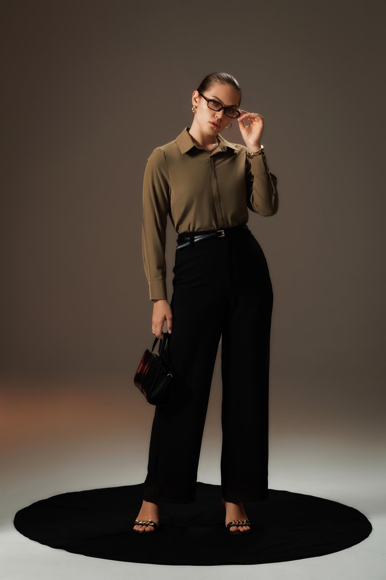 An essential, elegant foundation piece for sophisticated suiting. This shirt features a timeless pointed collar and a clean button-down silhouette with long, neatly finished sleeves. Crafted from a high-quality lightweight material in a versatile, soft neutral hue. The fabric offers a subtle sheen and impeccable drape, ensuring a professional yet relaxed fit when tucked or worn loose. The perfect workhorse for the CEO's wardrobe, easily transitioning from day to evening.