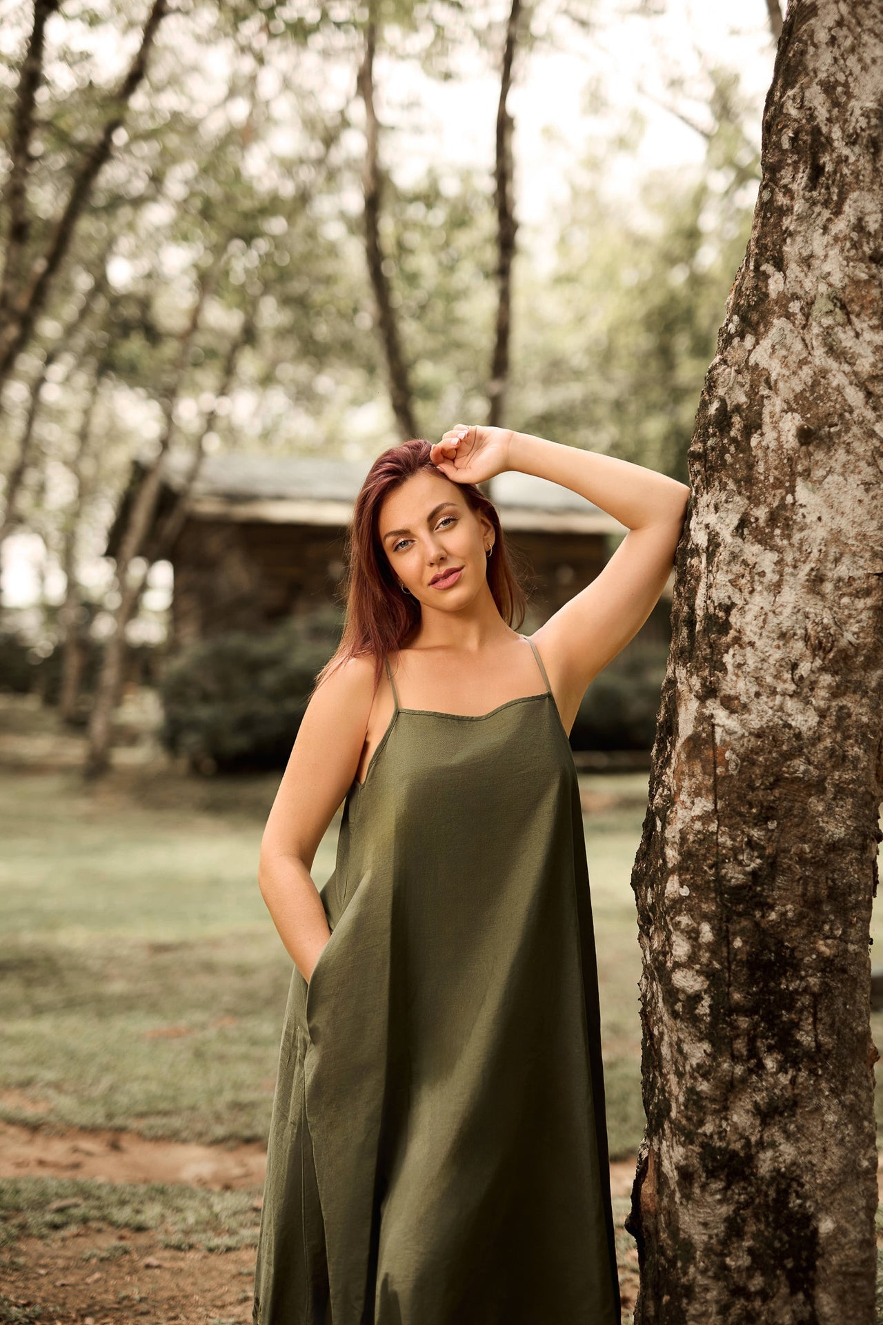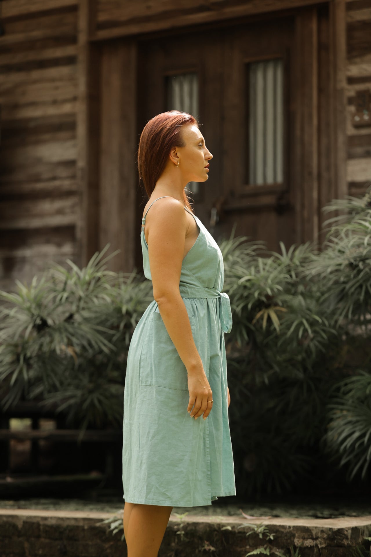 This unique wrap dress is designed in breathable linen-cotton fabric, offering both comfort and effortless style. The adjustable straps provide a customizable fit, while the tie-up closure enhances the flattering silhouette. A functional side patch pocket adds a touch of practicality to its modern design. Falling to a chic midi length, this versatile piece blends casual elegance with everyday comfort, making it perfect for warm days and relaxed gatherings.