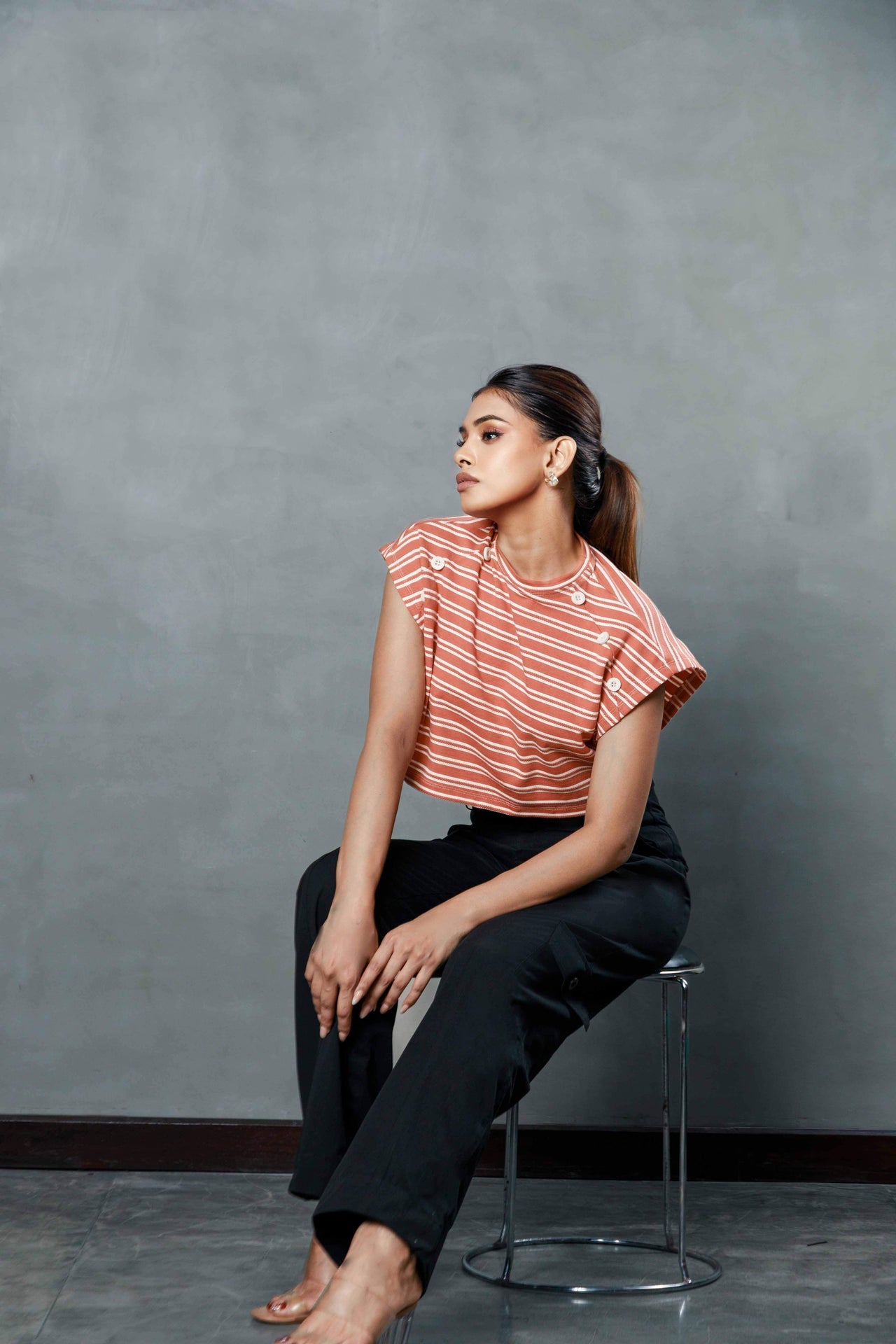 - Model height: 5’.8”