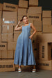 Refined yet effortlessly relaxed, this maxi dress features a sleek square neckline and wide shoulder straps that frame the shoulders beautifully. The structured bodice flows into a gently flared skirt, creating a flattering silhouette with graceful movement. Designed from a soft, durable denim-look fabric, it balances timeless appeal with contemporary style — perfect for brunches, city strolls, or laid-back evenings out.