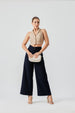 A chic sleeveless crop top crafted in delicate lace fabric, featuring a refined princess-line detail that enhances the silhouette. Designed with a sharp blazer-style collar, this formal wear piece blends elegance with modern sophistication—perfect for pairing with high-waist trousers or skirts for a statement look.”