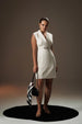 This structured black sheath dress is the definition of executive power. It boasts a sophisticated, blazer-style shawl collar and a sharp, sleeveless cut, offering a powerful alternative to traditional suiting. The expertly tailored silhouette is cinched with a chic gold-buckle belt detail, creating a defined and authoritative waistline. Crafted from a high-quality, structured suiting fabric that ensures all-day wrinkle resistance and a flawless drape. Perfect for the boardroom, this piece transitions effortlessly from high-stakes meetings to professional dinners.