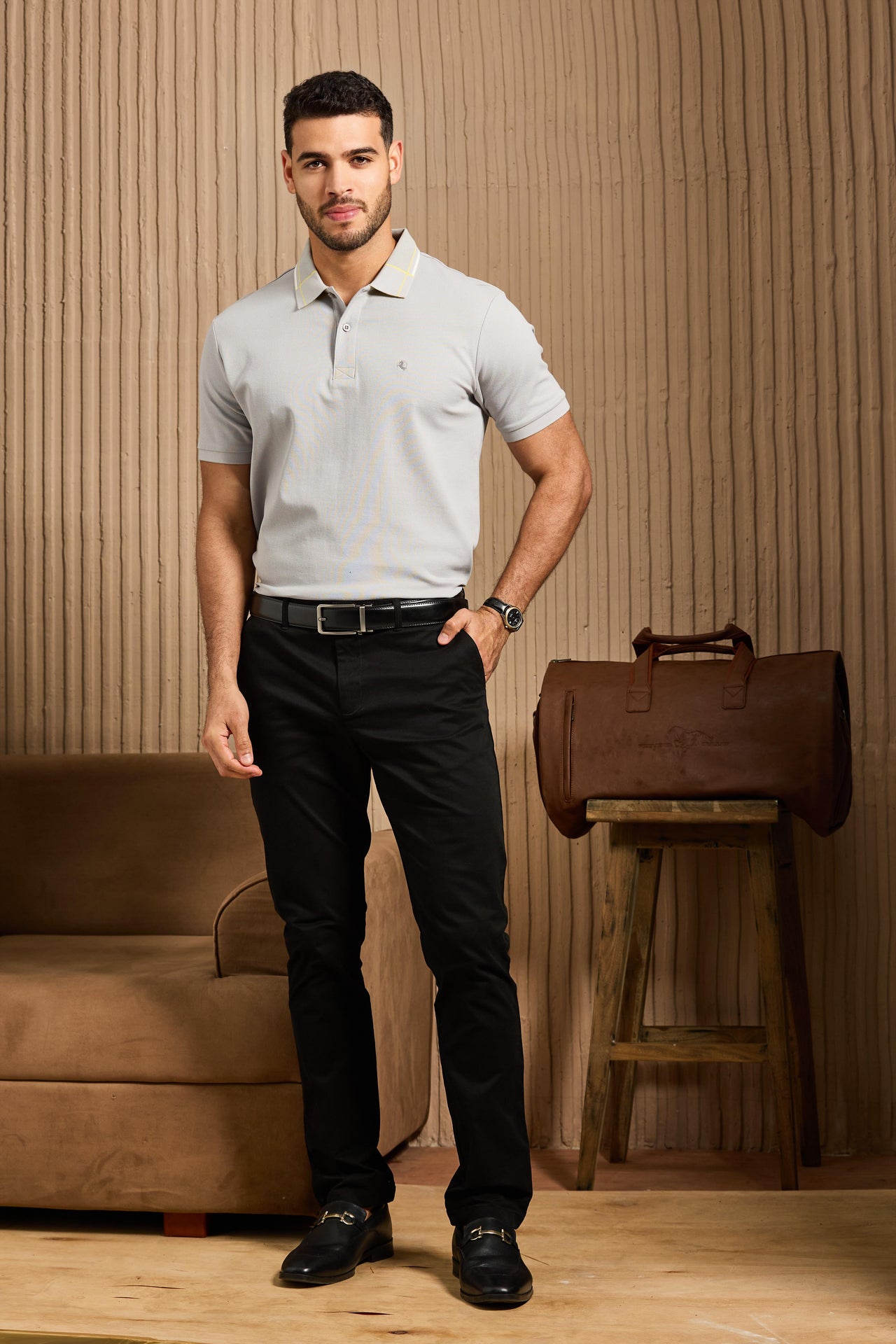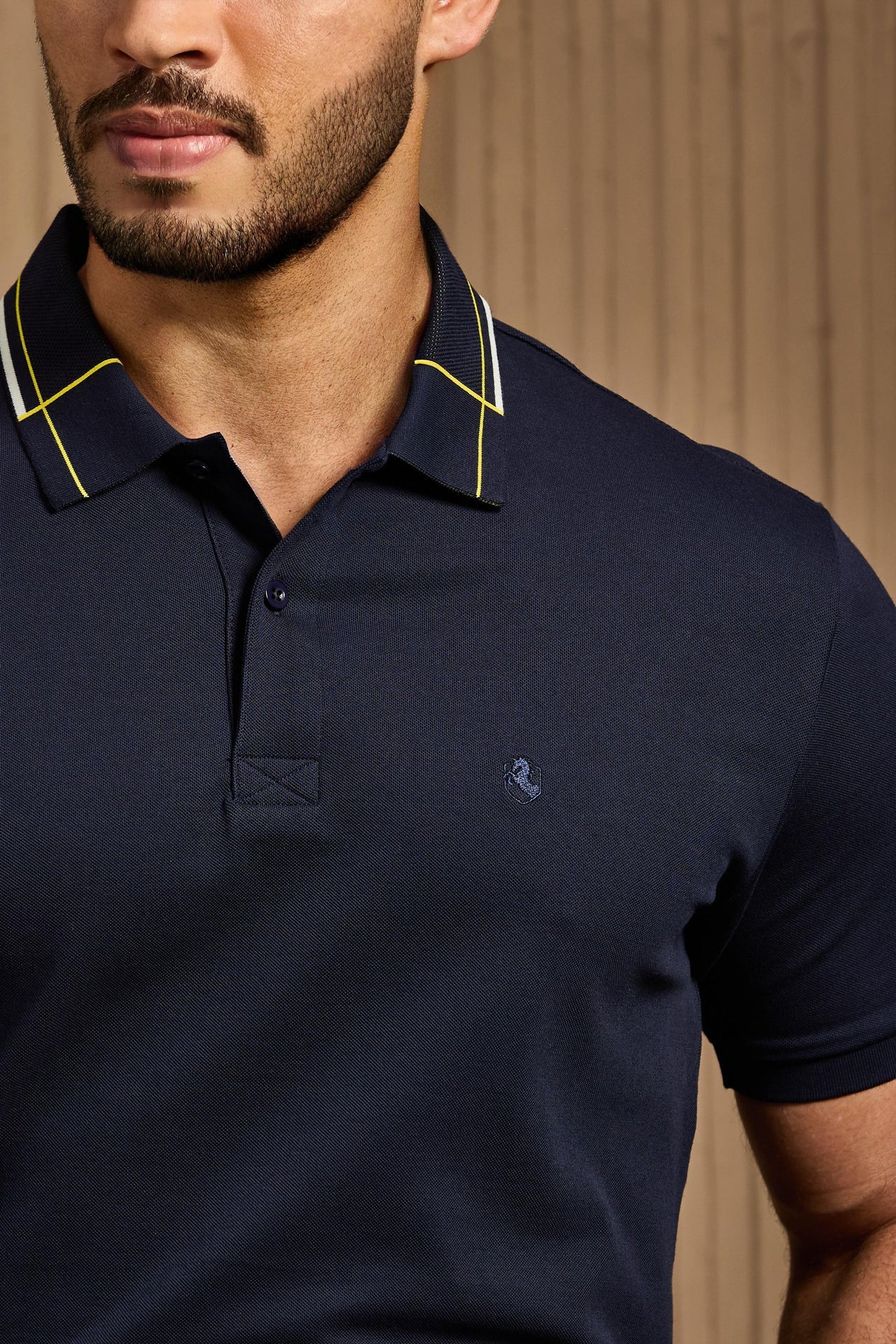 A refined essential designed for the man who prefers subtle standout details. This polo features a signature collar with clean gridline tipping that adds a modern, tailored edge without overpowering the minimalist silhouette. Crafted with a structured placket and smooth knit fabric, it offers all-day comfort and a polished appearance. The understated chest emblem finishes the look with a touch of sophistication, making this polo perfect for both smart and casual settings.
