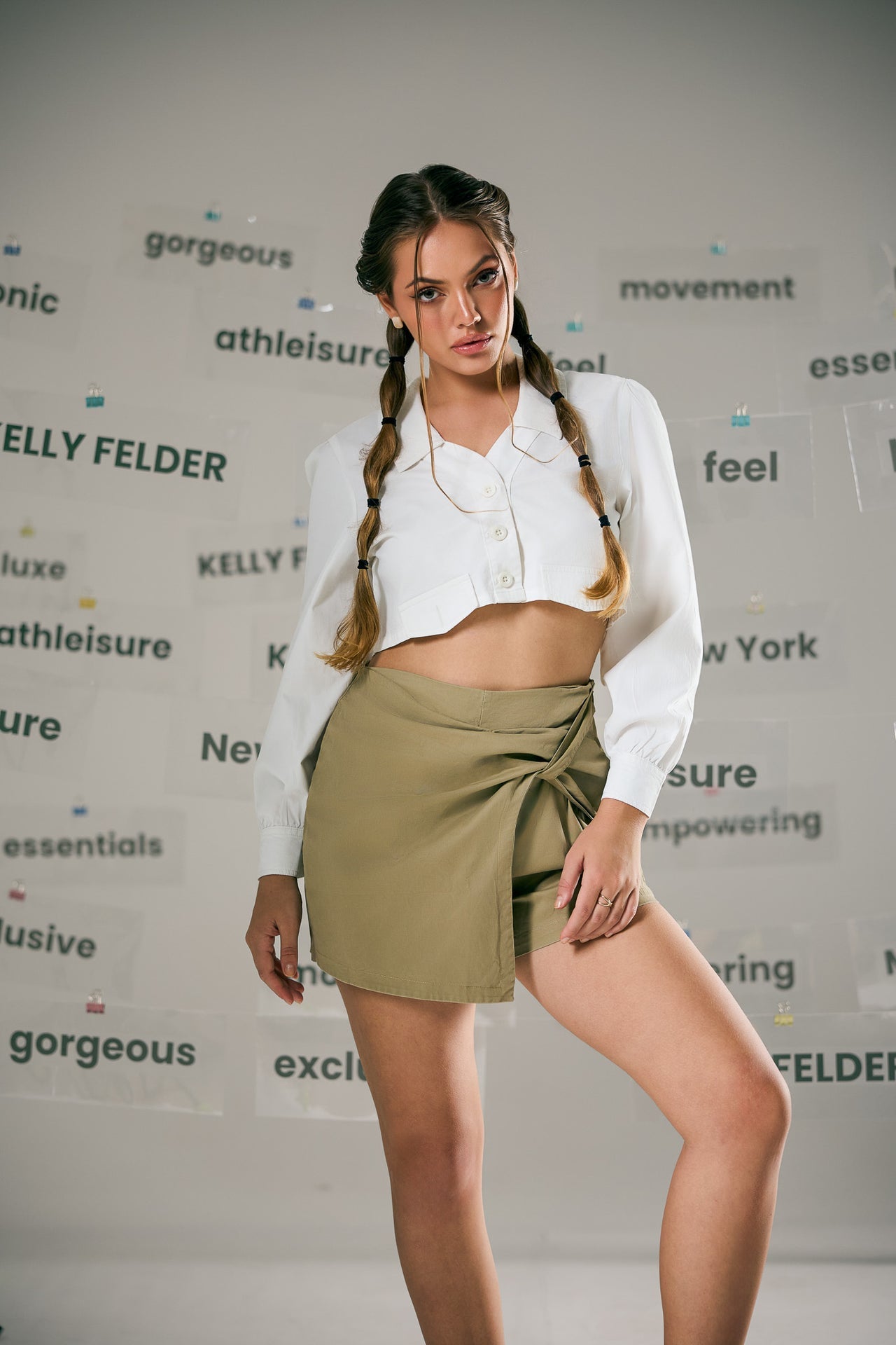 This twill fabric skort blends the look of a skirt with the comfort of shorts for easy. Designed with a side knot detail on the left, it adds a soft, wrapped effect that enhances the silhouette. The structured twill gives it a clean finish, while the hidden shorts underneath offer confident movement. A simple yet stylish piece with a touch of asymmetry and charm.