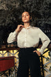 Infuse your evening look with artistic allure in this abstract Silk Shirt. This mesmerizing piece is crafted from smooth, high-quality silk, showcasing an elegant abstract pattern in a cool-toned palette of deep purples and blues. The classic button-down design and relaxed silhouette provide a comfortable yet sophisticated fit, making it an ideal choice for a cocktail party, a sophisticated date night, or an evening event. Style this shirt with sleek trousers to create a chic, contrasting ensemble that highlights the rich colors of the print, and finish the look with understated silver jewelry and a pair of classic pumps.