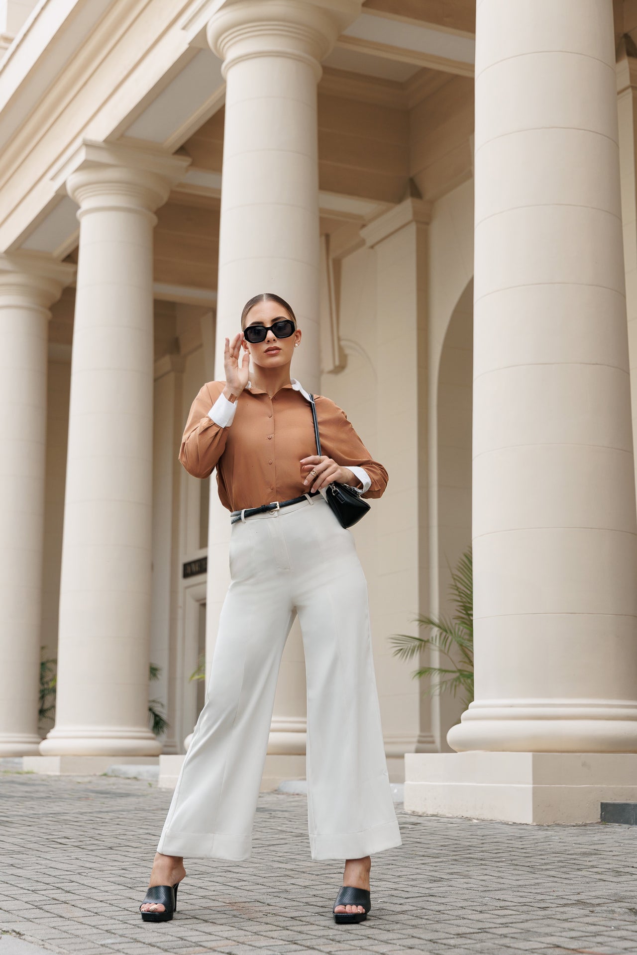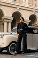 These trousers are a staple of the "old money" aesthetic. They are high-waisted with a classic wide-leg silhouette that drapes beautifully, creating a long and elegant line. The tailored fit and clean, simple design in a solid black color reflect a preference for timeless sophistication and high-quality construction over fleeting trends.