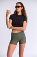 Turn heads in this open-back crop tee, designed with a sleek cut-out and supportive elastic strap detail. Crafted in a smooth stretch fabric, it blends sporty function with bold style — perfect for training, layering, or making a statement on the go.