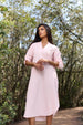 Effortlessly chic and versatile, this solid midi-length dress is crafted from breathable linen-cotton fabric for all-day comfort. Designed in a loose-fitted silhouette, it features a sleek Chinese collar and long sleeves with tab details for a modern touch. Practical side pockets add functionality, while the relaxed fit ensures ease of movement. Perfect for casual outings or smart-casual occasions, this timeless piece blends elegance with everyday wearability.