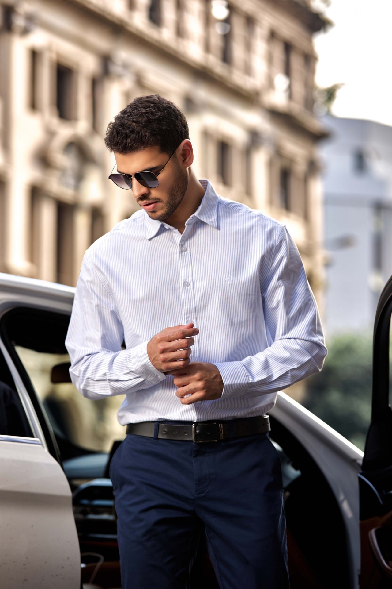 The Signature Stripe Oxford Shirt is crafted for timeless versatility with a refined everyday structure. Made from an authentic Oxford basket weave, the fabric features a subtly textured surface that delivers durability, breathability, and a naturally crisp appearance.The woven stripe pattern is built directly into the fabric construction, adding depth and visual interest without surface printing. The Oxford weave provides a balanced weight that holds its shape throughout the day while softening gradually with wear for enhanced comfort.