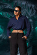 A cropped jacket with a minimalist collar and structured ease. Featuring dropped shoulders, cuffed sleeves, and an elasticated hem for a relaxed yet defined silhouette. The bold back graphic channels SCYLLA ZELUS attitude, blending form with future-forward energy. Lightweight and sharp, it’s built for movement — and made to stand out.