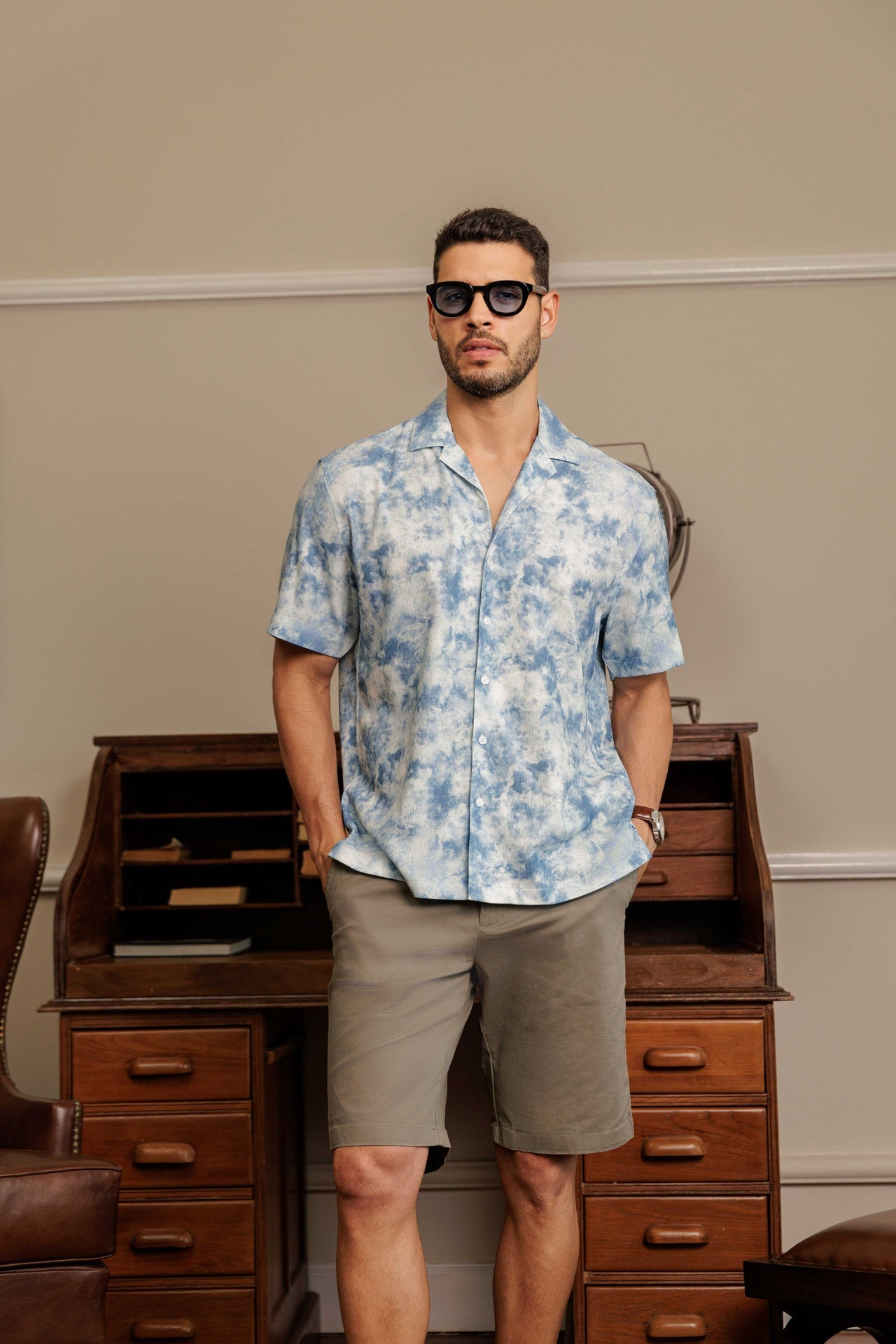 Effortlessly refined, this short-sleeve shirt combines relaxed tailoring with a lightweight textured fabric that feels soft and breathable against the skin. Designed for both casual outings and smart weekend wear, it features a clean open-collar neckline, button-down front, and a naturally draped silhouette that moves with ease. The subtle surface texture adds depth and sophistication, giving it a distinct tactile appeal. Perfect for pairing with denim, chinos, or tailored shorts for a versatile, laid-back yet elevated look