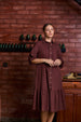 This elbow-length sleeve midi dress is crafted from breathable linen-cotton fabric for all-day comfort. Designed with delicate pintuck detailing and a classic button-down front, it combines timeless style with effortless ease. The loose-fitted silhouette, playful bottom frill, and functional side pockets create a flattering and practical design. Perfect for casual outings or relaxed gatherings, this versatile dress blends comfort, feminine charm, and understated elegance for a wardrobe essential.