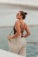A relaxed coastal classic reimagined. The Sailaway Crochet blends handwoven cotton craftsmanship with a sturdy leather handle. Complete with an inner pouch, its cream bucket body and rich brown handle evoke breezy summer escapes with a touch of luxury.
