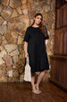 Designed for everyday ease with a refined touch, this knee-length dress features elbow-length sleeves and a soft pleat detail at the front neckline. Crafted from breathable linen-cotton fabric, it offers all-day comfort with a naturally airy feel. Finished with practical side pockets, this piece blends simplicity and functionality—perfect for workdays, errands, or relaxed get-togethers.
