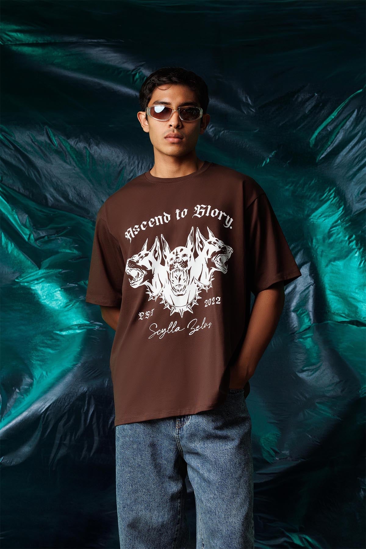 This oversized Scylla Zelus tee features a bold front graphic of a three-headed hound β a symbol of unshakable power and fearless ambition. Designed for those who rise through chaos, the "Ascend to Glory" statement says it all. Crafted from breathable cotton jersey with a relaxed drop-shoulder silhouette, it's made to move with you through the streets or the grind.