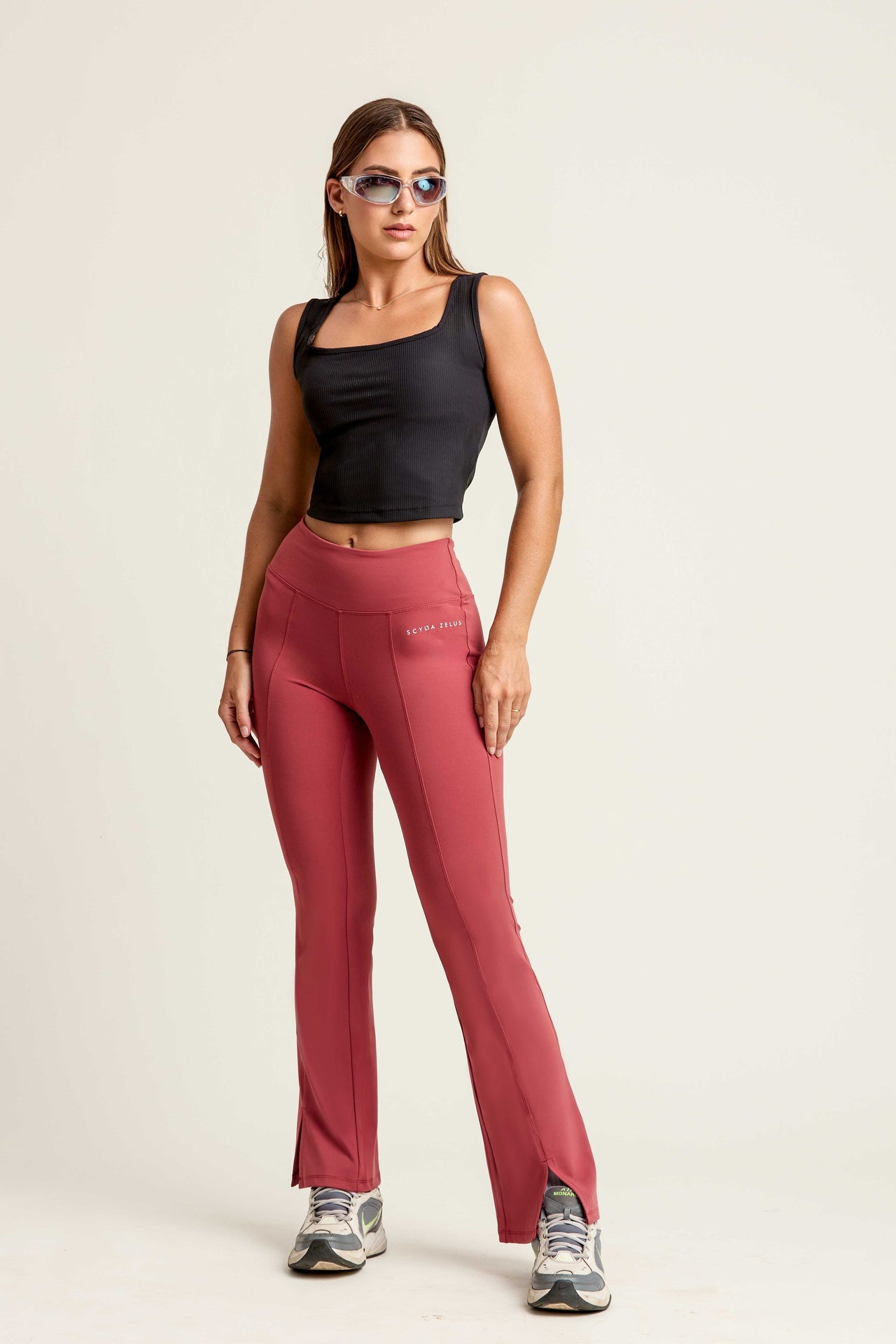 -Flare leg feature a fitted design through the thighs that gradually flares out from the knee down, offering a flattering and stylish silhouette with added comfort and movement