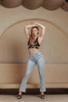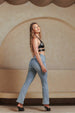 Step up your denim game with these high-rise slim bootcut jeans—designed for a flattering, elongating fit. Featuring a sleek, slim silhouette through the hips and thighs before subtly flaring at the hem, they offer a perfect balance of modern and classic style.