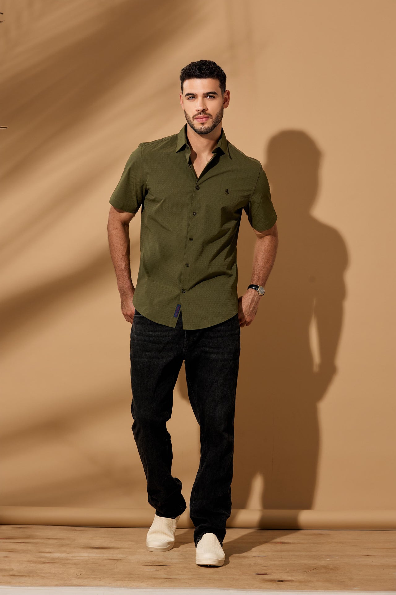 Elevate your everyday wardrobe with this lightweight textured shirt crafted for comfort, breathability, and understated refinement. Made from a smooth woven fabric featuring a subtle micro-texture, it adds visual depth while maintaining a clean, polished look suitable for both casual and smart-casual styling.