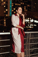 Elevate your evening wardrobe with the Two-tone Twilight Button-down dress, a sophisticated and contemporary piece available in rich pairings. This elegant dress is crafted from smooth, luxurious fabric, featuring a striking color-block design that is split down the center for a modern, artistic look. The classic shirt dress silhouette includes a refined collar, a full button-front closure, and a self-tie waist belt that cinches the figure beautifully. Perfect for a cocktail party, a sophisticated dinner date, or a business-to-evening event, this dress requires minimal styling: pair it with sleek heeled mules or pumps, a simple clutch, and delicate gold jewelry to maintain the focus on its unique two-tone design, ensuring a polished and memorable impression.