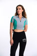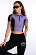 Form and function. A colour block design that references retro silhouettes, this crop top is made from lightweight and breathable cotton jersey. It’s cut to a sculpting funnel-neck silhouette with a fully functioning front zip for adjustable coverage and ventilation.